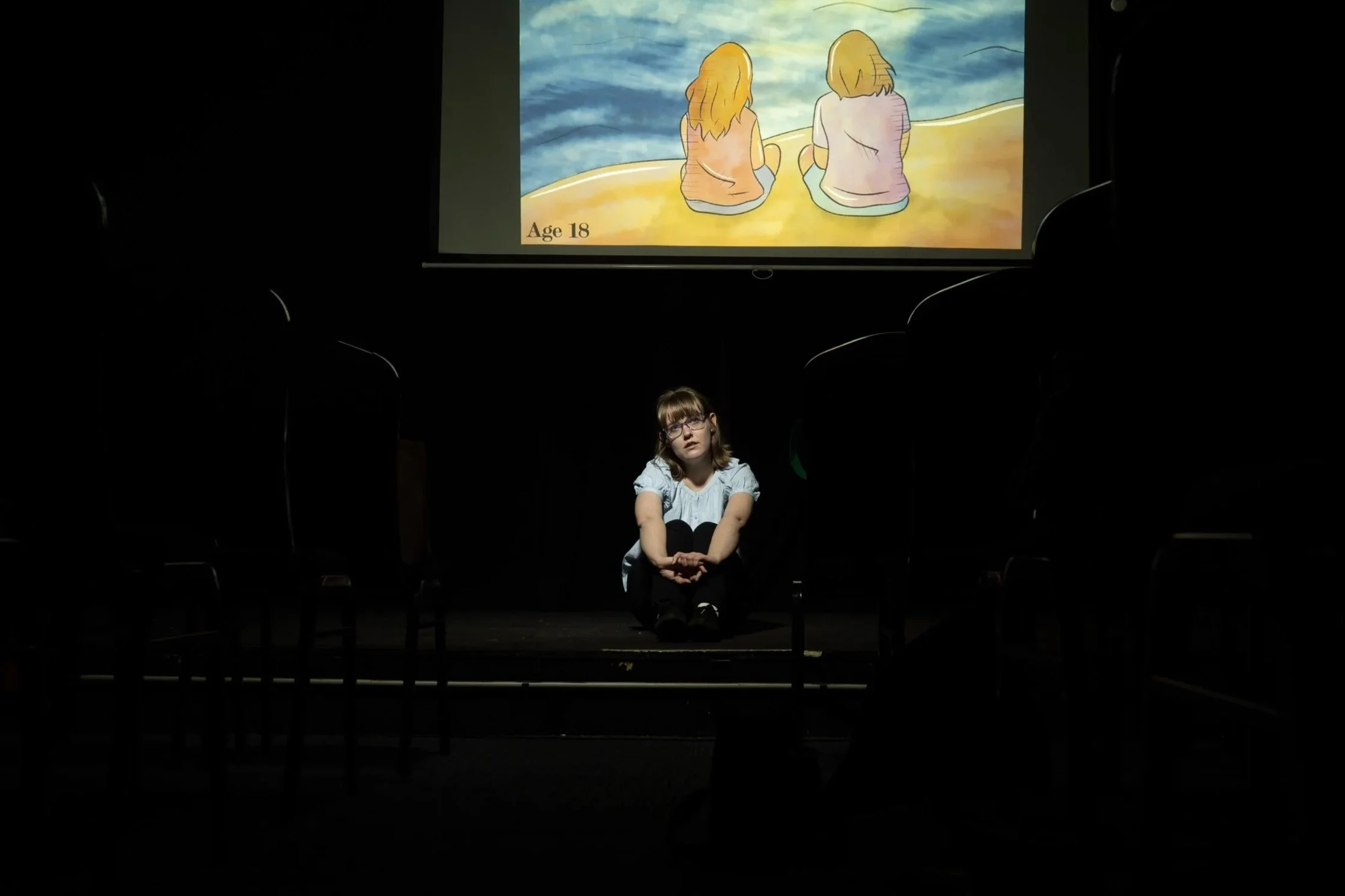 Directed by Marjorie Rodriguez, ‘Silently Screaming’ is a gentle performance rooted in realism. The rhythmic and stylistic choices Rodriguez chose built the internal and external world of the main character. Her direction guided an authentic and emotionally honest performance. Working under Rodriguez’s directorship, Myra Barber designed the lighting and sound of this production. Barber’s work highlighted the changing scenery of this non-linear story. With lifelike lighting and sound, Barber’s design organically shifted through the moments of the story. The stage was intentionally left bare and projected design denoted setting. The illustrations, created by Ash Ryan, whose art was sketched in style with a soft colour palette, paid homage to the inner child of the main character.